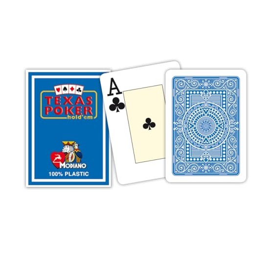 Il mazzo Modiano Texas Hold’em rappresenta il connubio perfetto tra la storica maestria italiana e l’innovazione tecnologica nei materiali. Distribuito da Play To Win, questo mazzo è realizzato interamente in 100% PVC di alta qualità, un materiale che garantisce una durata e una resilienza senza pari, rendendolo lo standard preferito da molti casinò e club di poker europei.